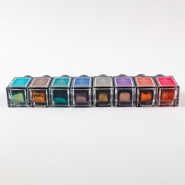 【Jエルバン】アニバーサリーインクにミニボトルが登場 2025年09月09日 金の微粒子が入ったアニバーサリーインク1670は、パリの中心地で誕生したメゾン・エルバン創業の年を記念してつくられたインクです。シーリングワックスとインクの原料をもとめ、数多くの航海を重ねた偉大なる冒険家エルバンの豊かな人生とその冒険をデザインソースにしています。発売中の50mlボトルに合わせて、少量の使用に適した15mlボトルが登場しました。>> 商品ページ «前 次» UP DATE